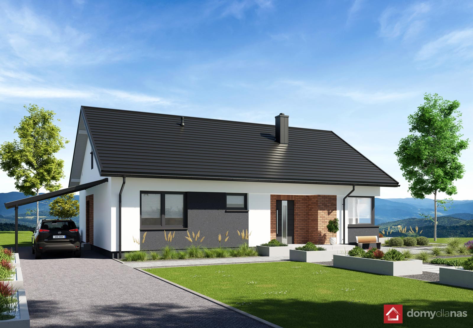 inne: przedstawiona na wizualizacjach wiata garażowa ma charakter poglądowy