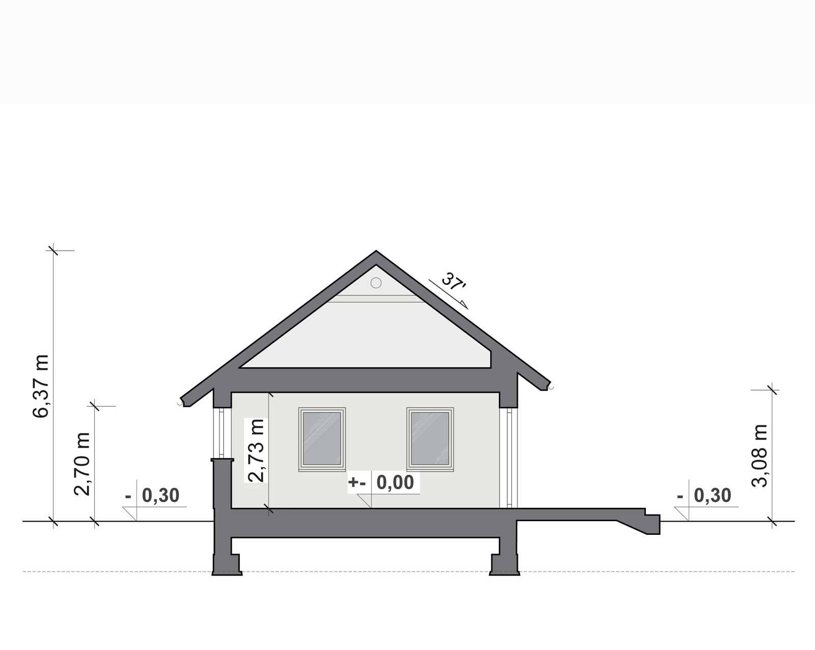 | kąt nachylenia dachu skośnego: | 37 | o |