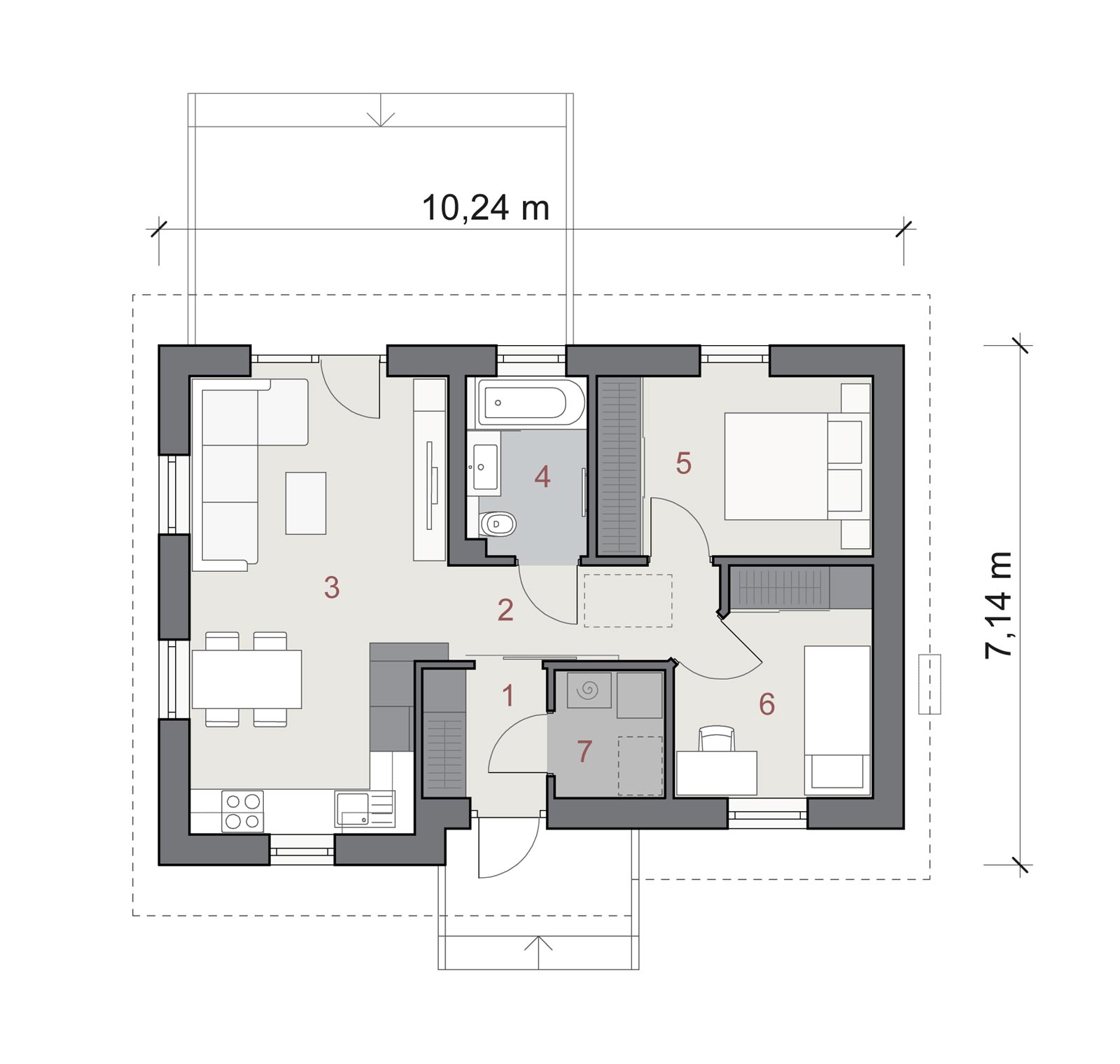 - prezentowane materiały graficzne mają charakter koncepcyjno- poglądowy i nie ujmują szczegółów właściwych dla projektu arch.- budowlanego