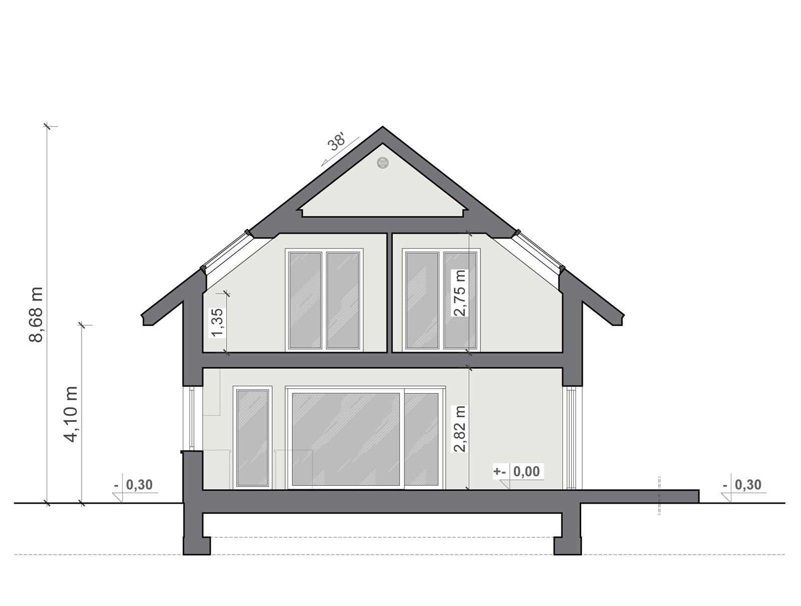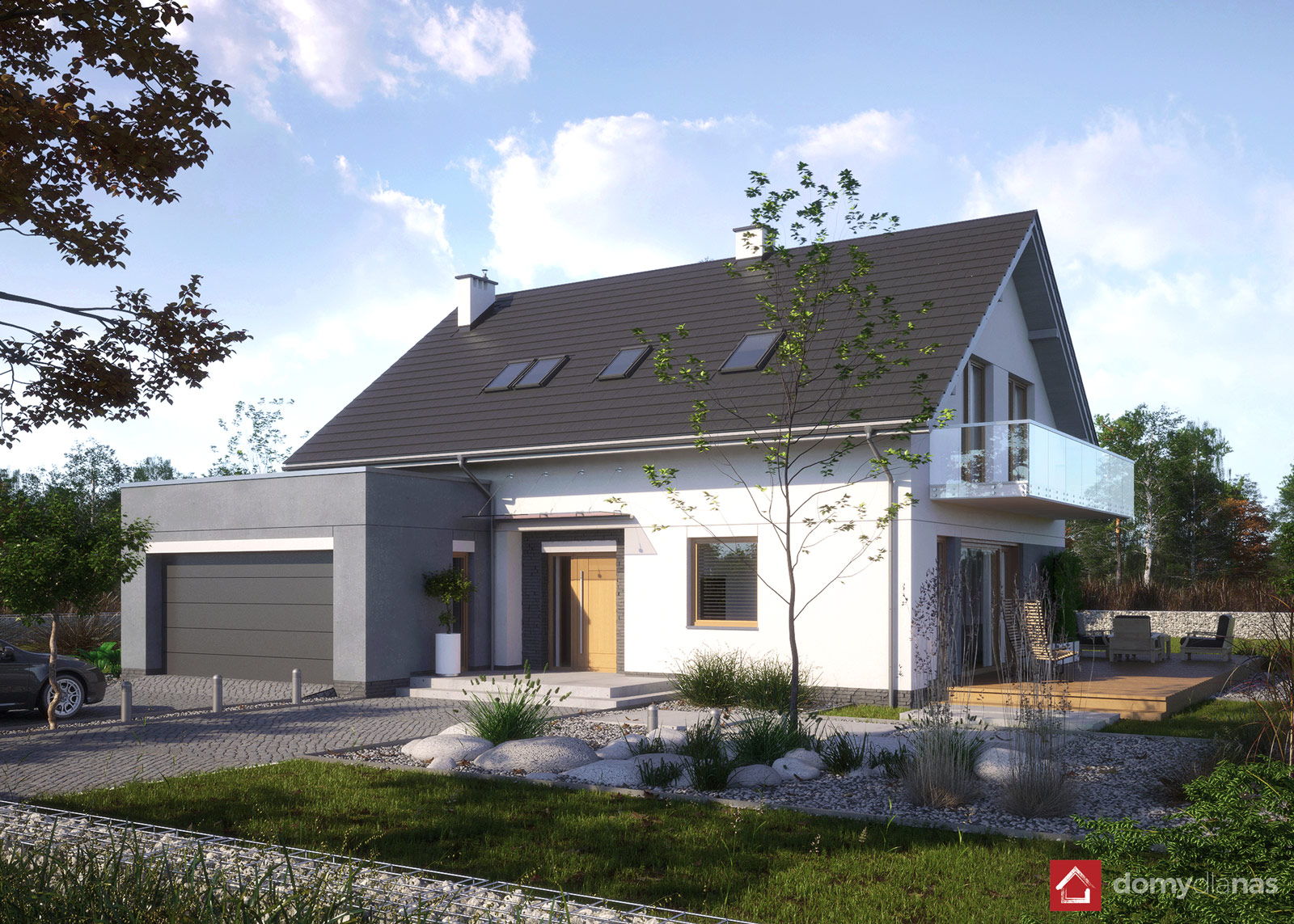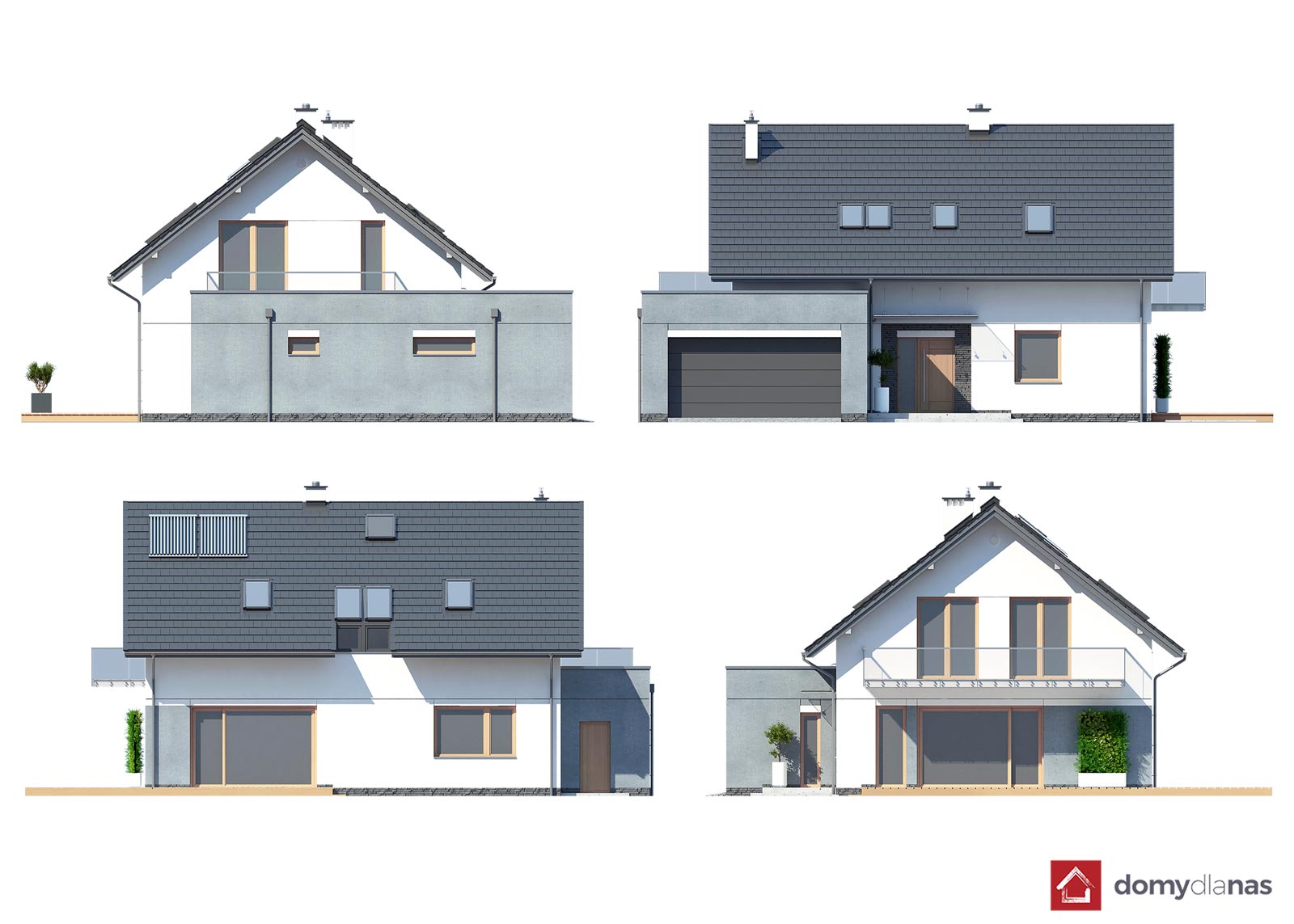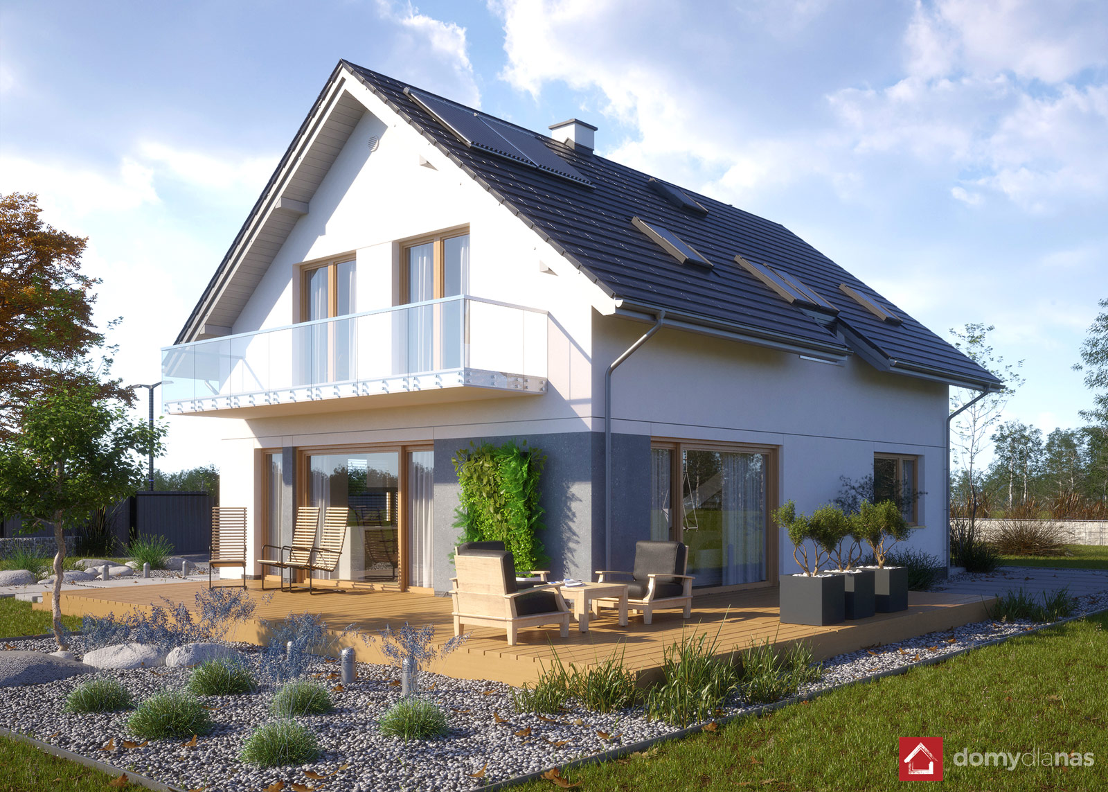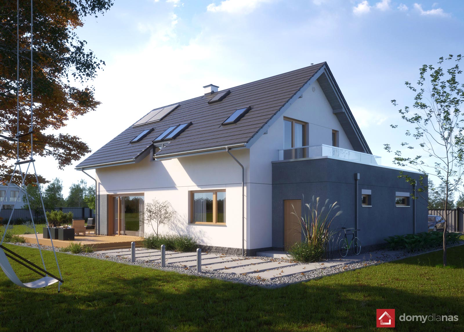 wykończenie zewn.: tynk silikonowy, płytki elewacyjne, dachówka ceramiczna