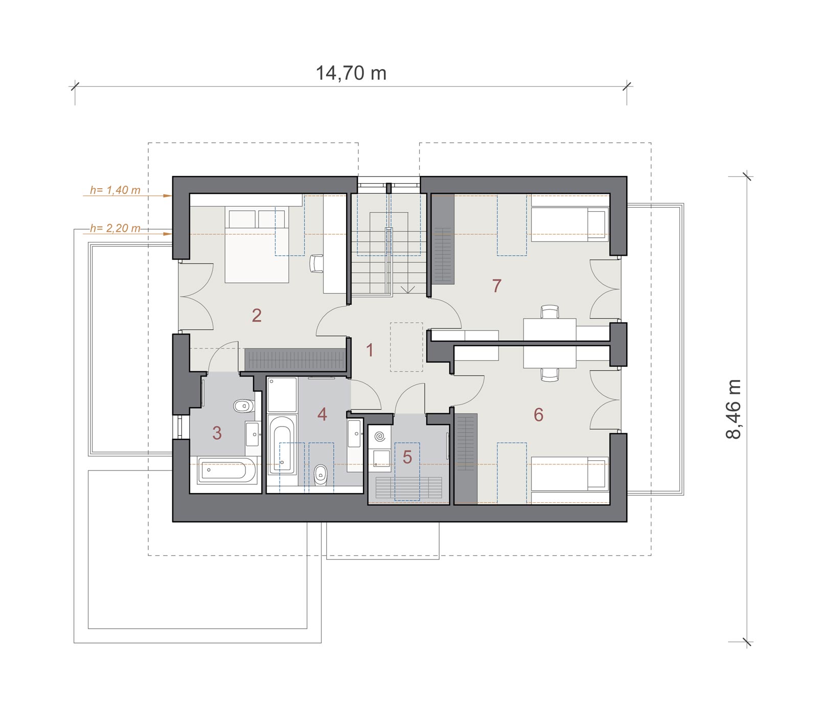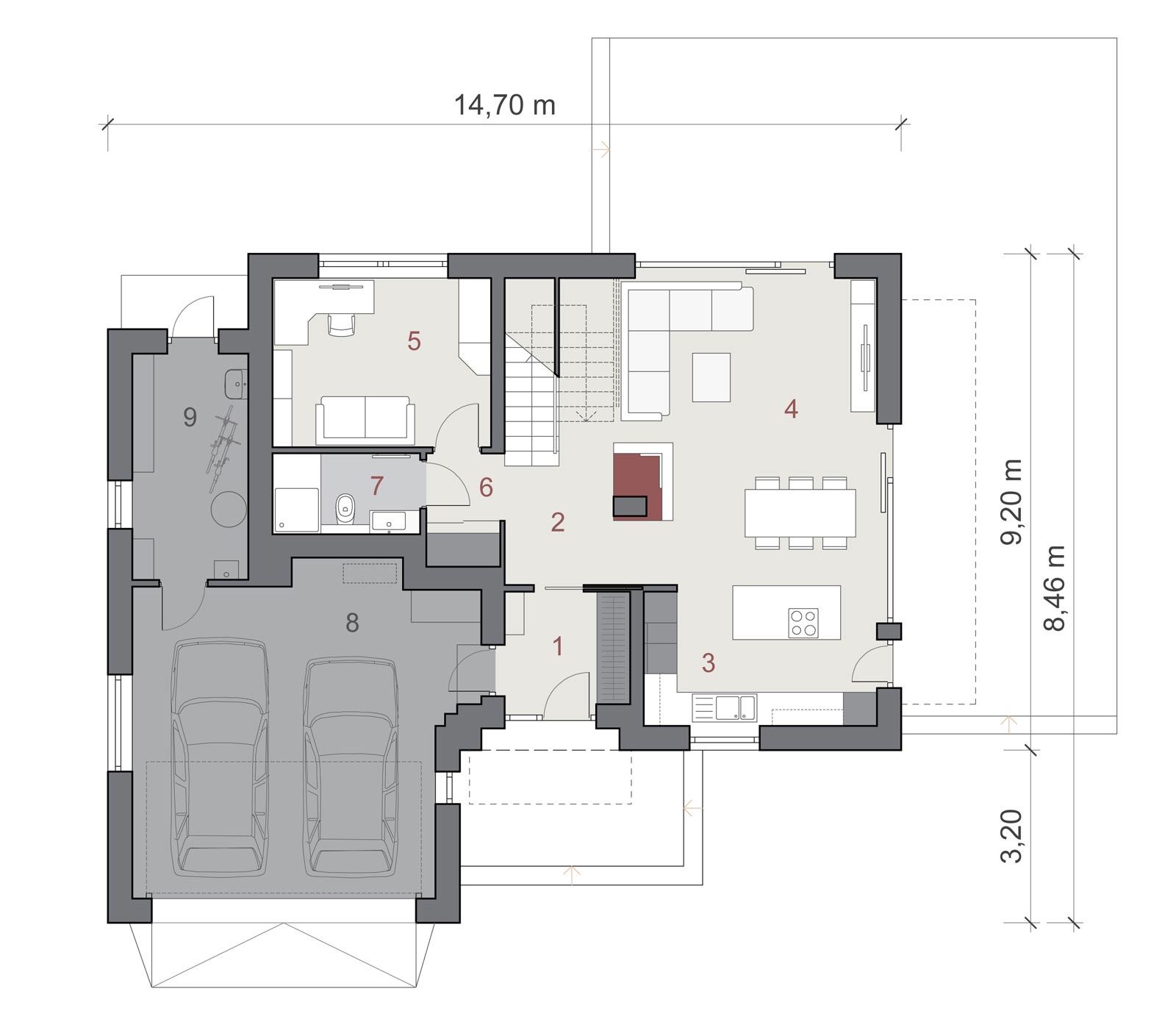 wentylacja: mechaniczna z rekuperacją w systemie rozdzielaczowym; grawitacyjna - w garażu i pom. gosp.