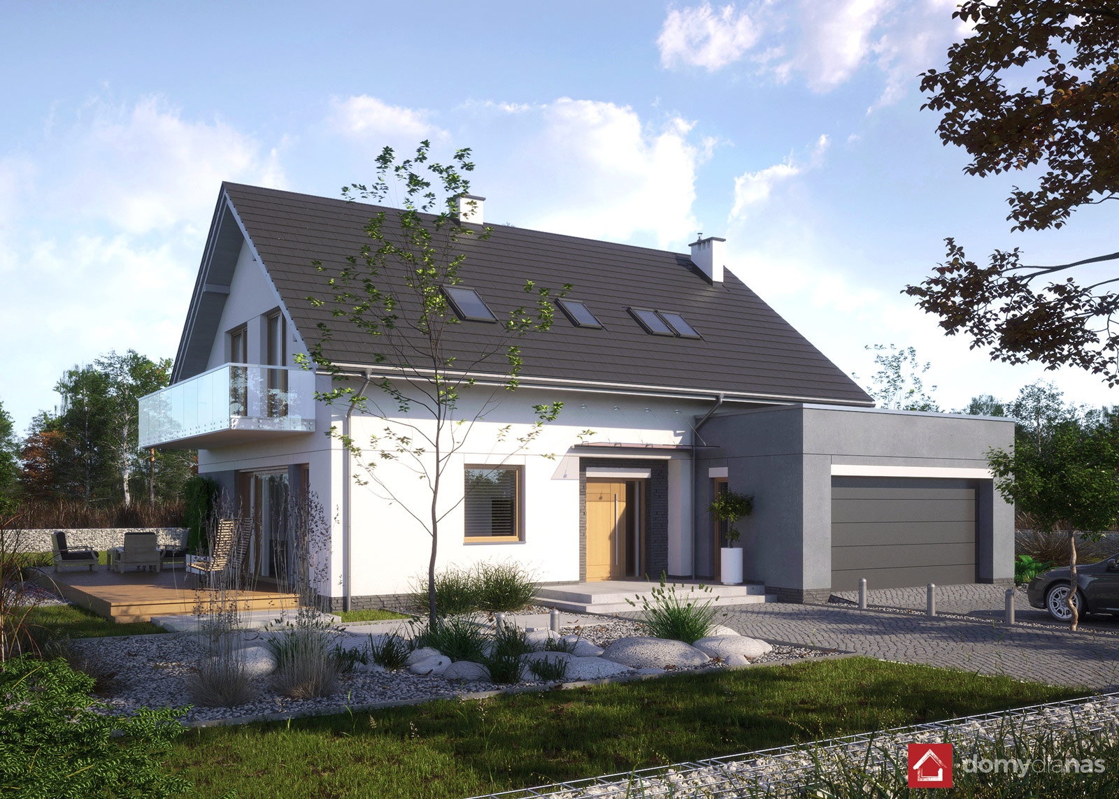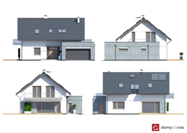 wykończenie zewn.: tynk silikonowy, płytki elewacyjne, dachówka ceramiczna
